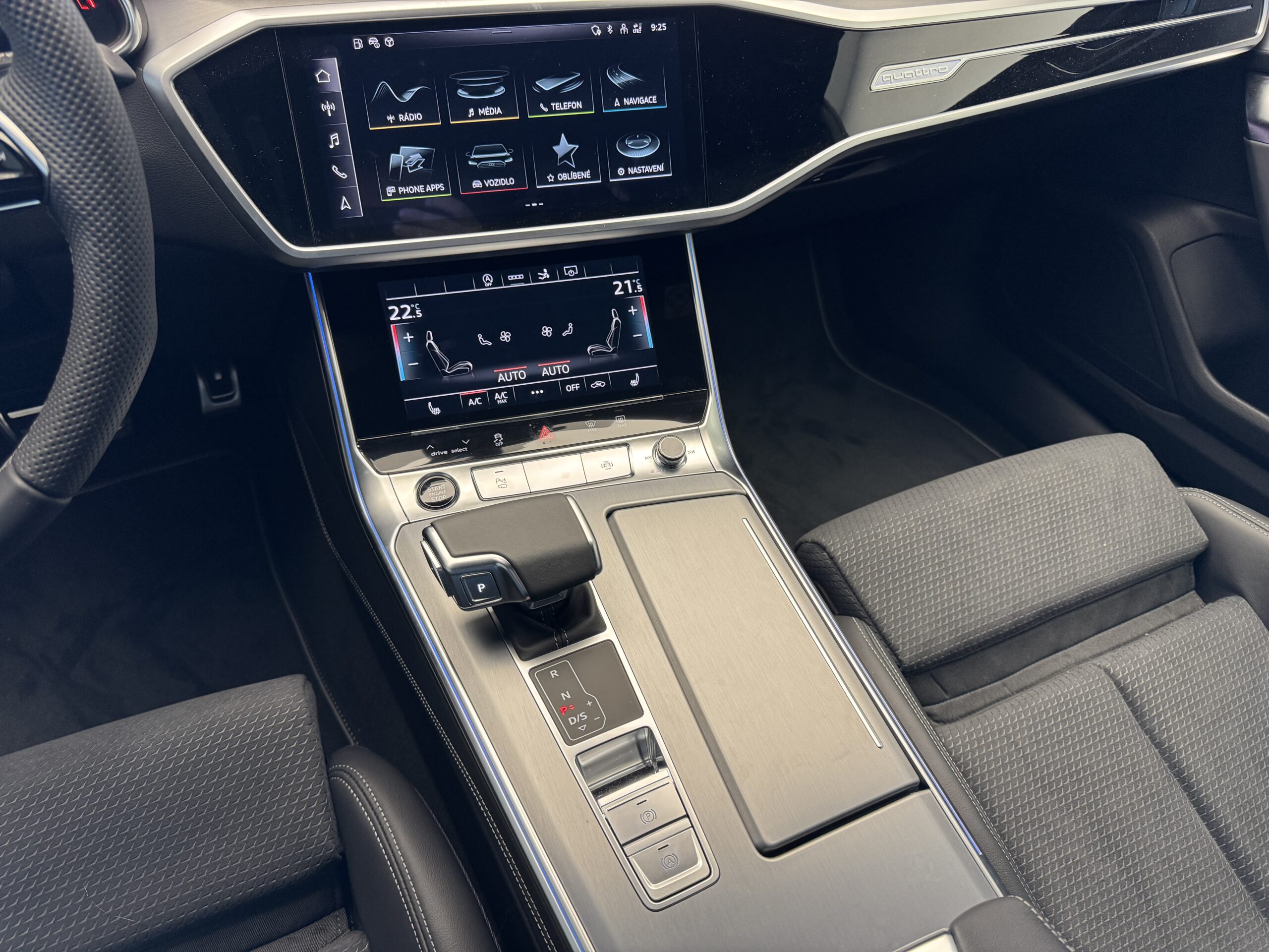 - Ovládací prvky v lesklé černé barvě s haptickou odezvou a interiérem v hliníkové optice